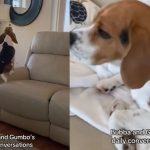 Beagle (friendly, curious, can be stubborn but relatively calm indoors)