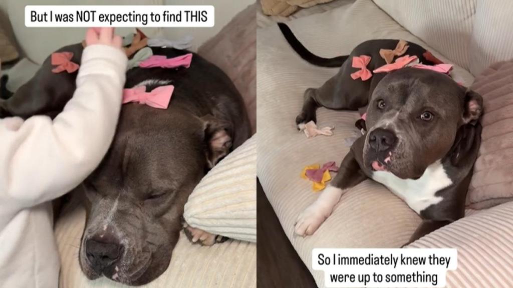 When the dog and his human friend were “quiet for too long,” their mom “knew they were up to something.” And to her surprise, she saw her daughter had “turned” her “boy into a princess” by placing multiple bow clips throughout his body.