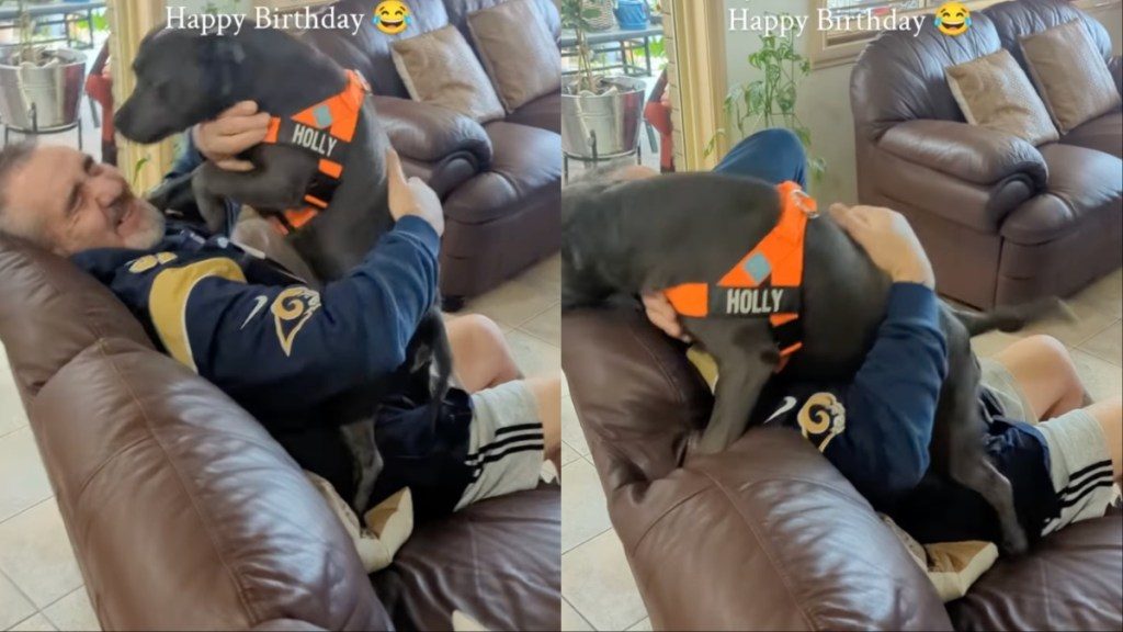 Video shows dog excited for grandpa’s birthday when they arrive at his house